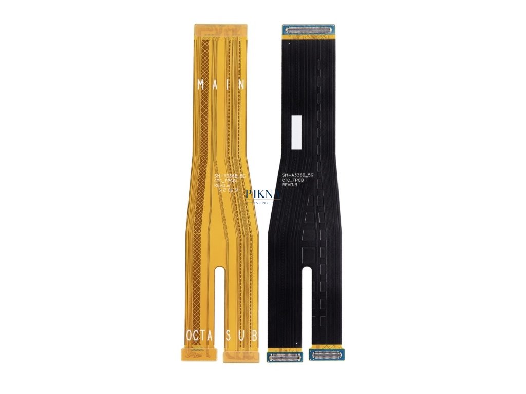 Náhradný flex kábel základnej dosky (mainboard flex cable) určený pre mobilný telefón Samsung Galaxy A33 5G (model A336, rok 2022). Tento diel slúži na prepojenie základnej dosky s ostatnými komponentmi zariadenia a je nevyhnutný pre správne fungovanie telefónu.