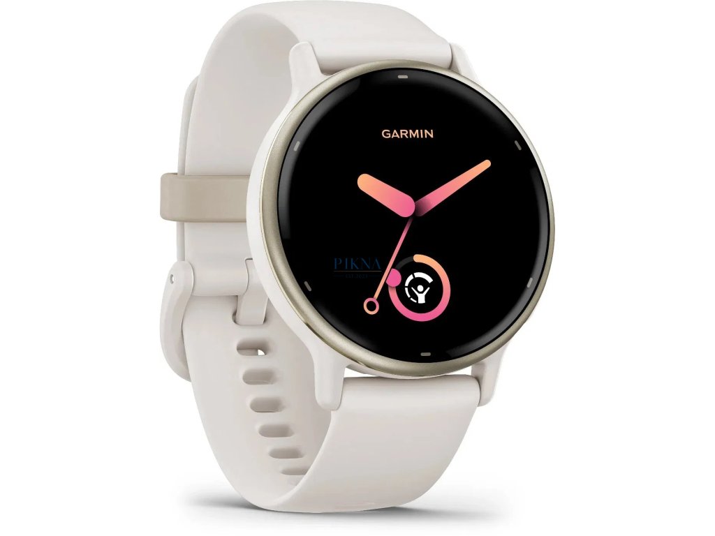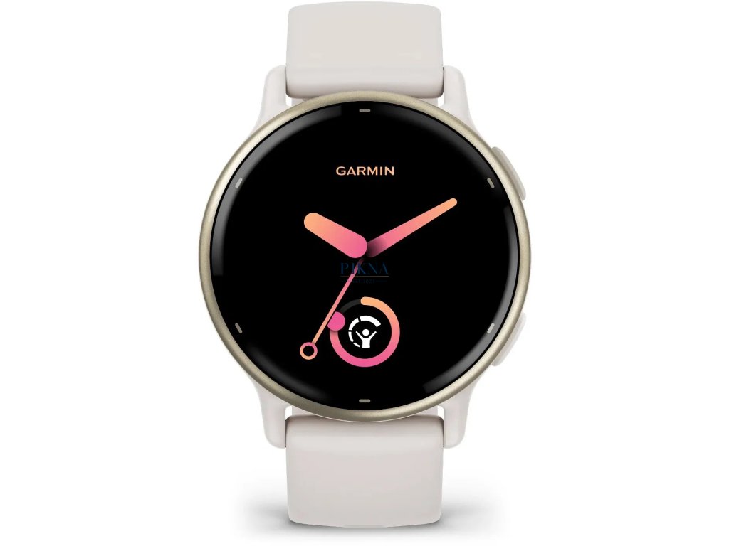 Smart hodinky – dámske, kompatibilné s OS Android a iOS, 1,2" AMOLED displej, NFC platby cez aplikáciu Garmin Pay, GPS, krokomer, meranie kyslíka v krvi, monitoring spánku, meranie pulzu, vodotesnosť 50 m (5 ATM), maximálna výdrž batérie 264 h