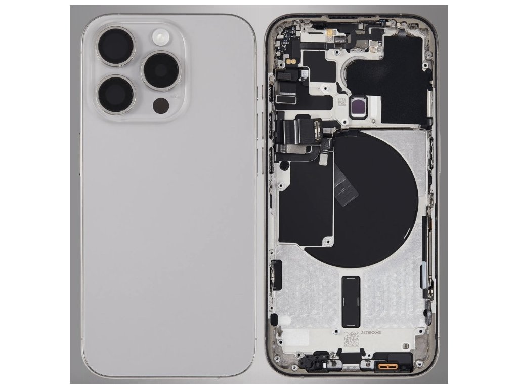 Zadné sklo + rám (vytiahnutý A) - Biely s dielmy (okrem nabíjania, repoduktora a vibrátoru) pre iPhone 15 Pro Max NATURAL TITANIUM